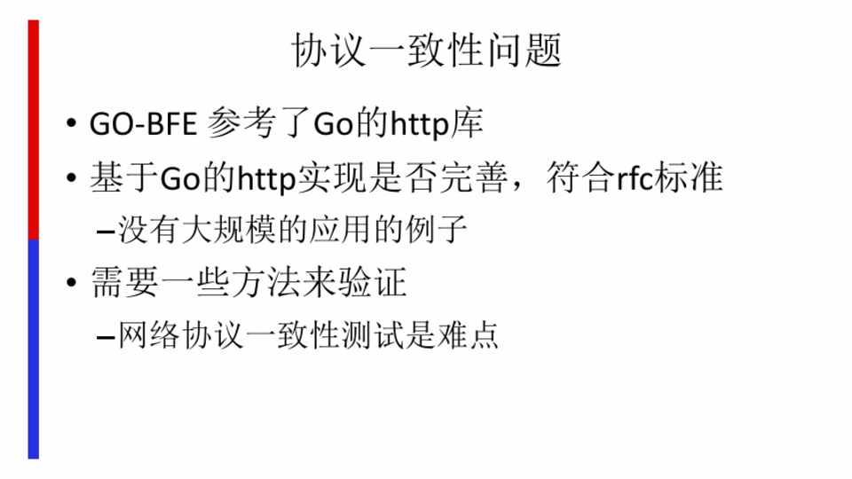 • GO-BFE 参考了Go的http库 • 基于Go的http实现是否完善,符合rfc标准