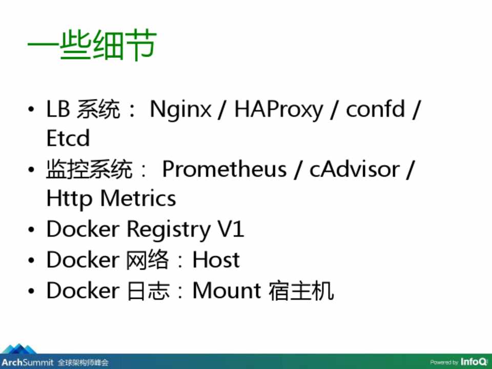 • Docker Registry V1 • Docker 网络:Host • Docker 日志:Mount 宿主机