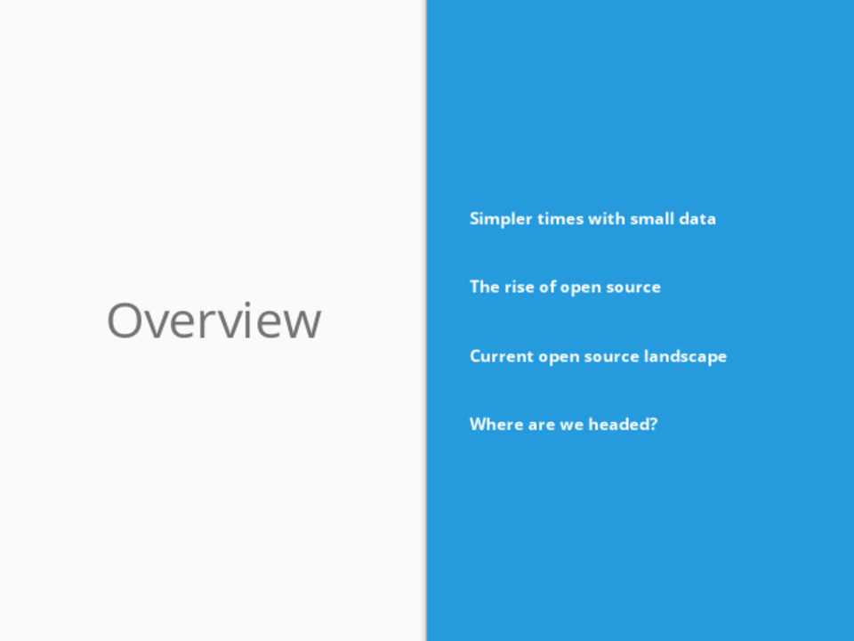 Simpler times with small data The rise of open source Current open source landscape Where are we headed?