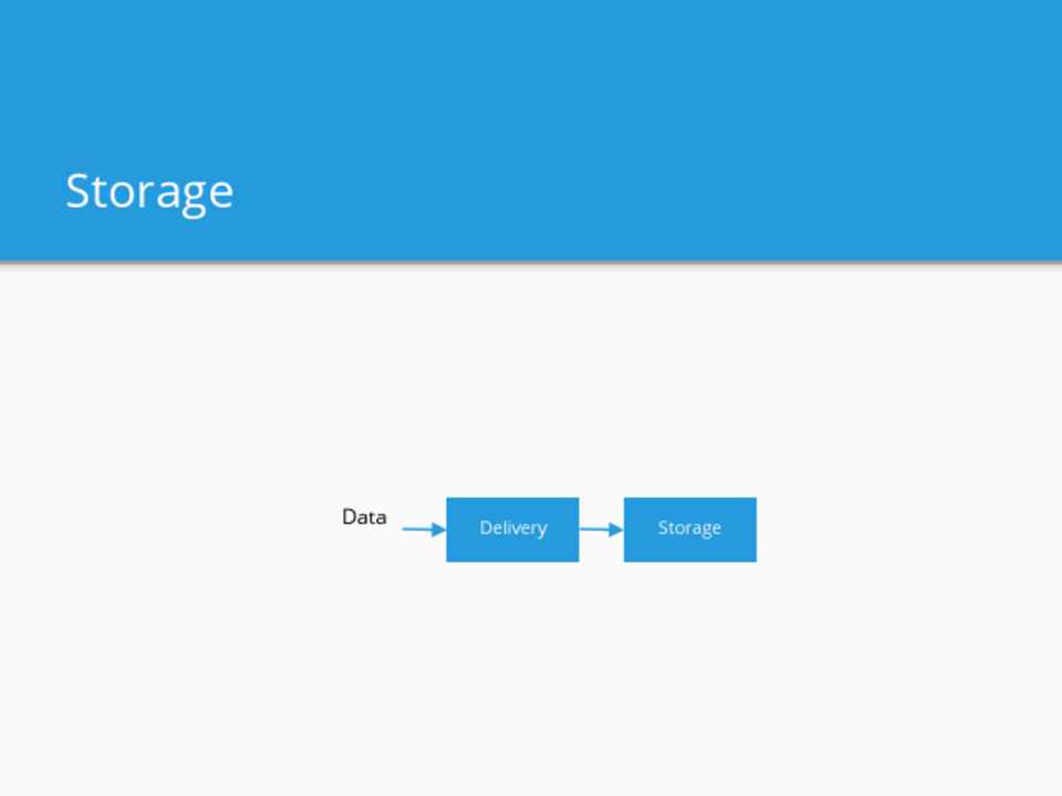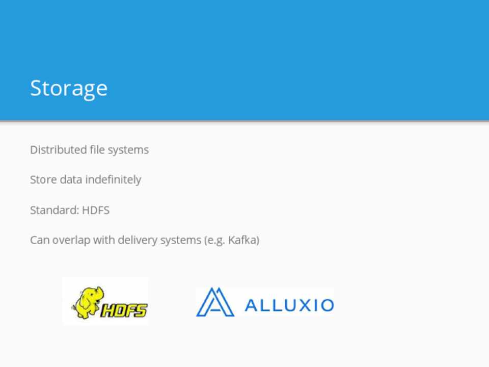 Distributed file systems Store data indefinitely Standard: HDFS Can overlap with delivery systems (e.g. Kafka)