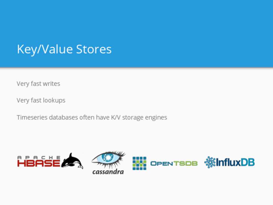 Very fast writes Very fast lookups Timeseries databases often have K/V storage engines