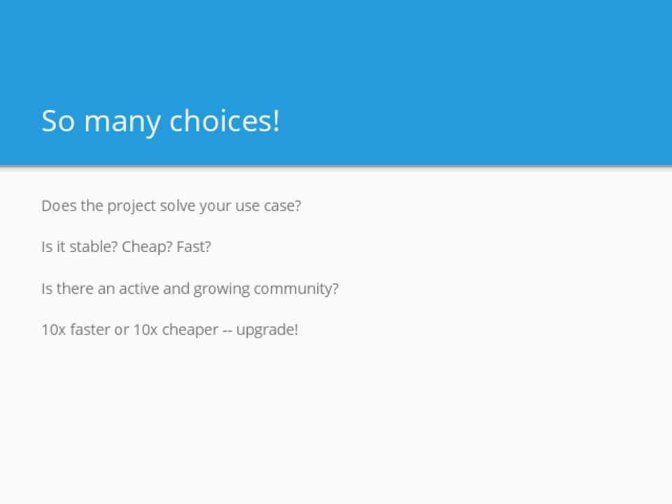 Does the project solve your use case? Is it stable? Cheap? Fast? Is there an active and growing community? 10x faster or 10x cheaper -- upgrade!