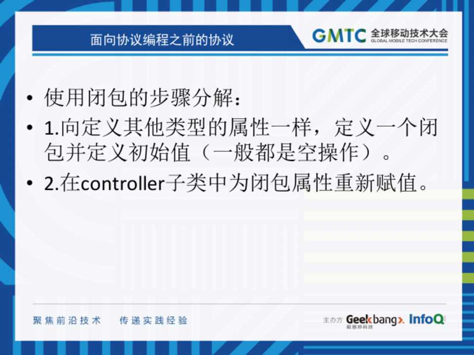 包并定义初始值(一般都是空操作)。 • 2.在controller子类中为闭包属性重新赋值。