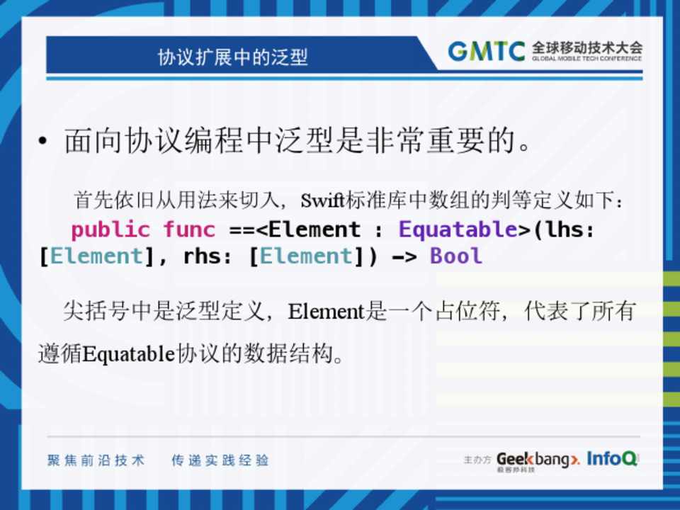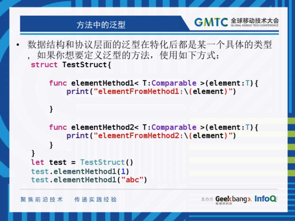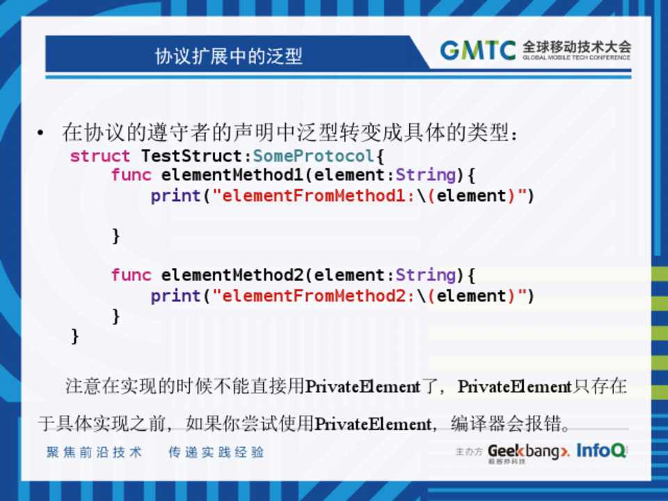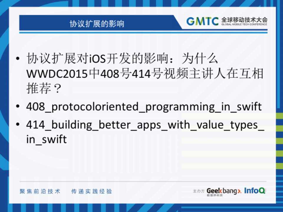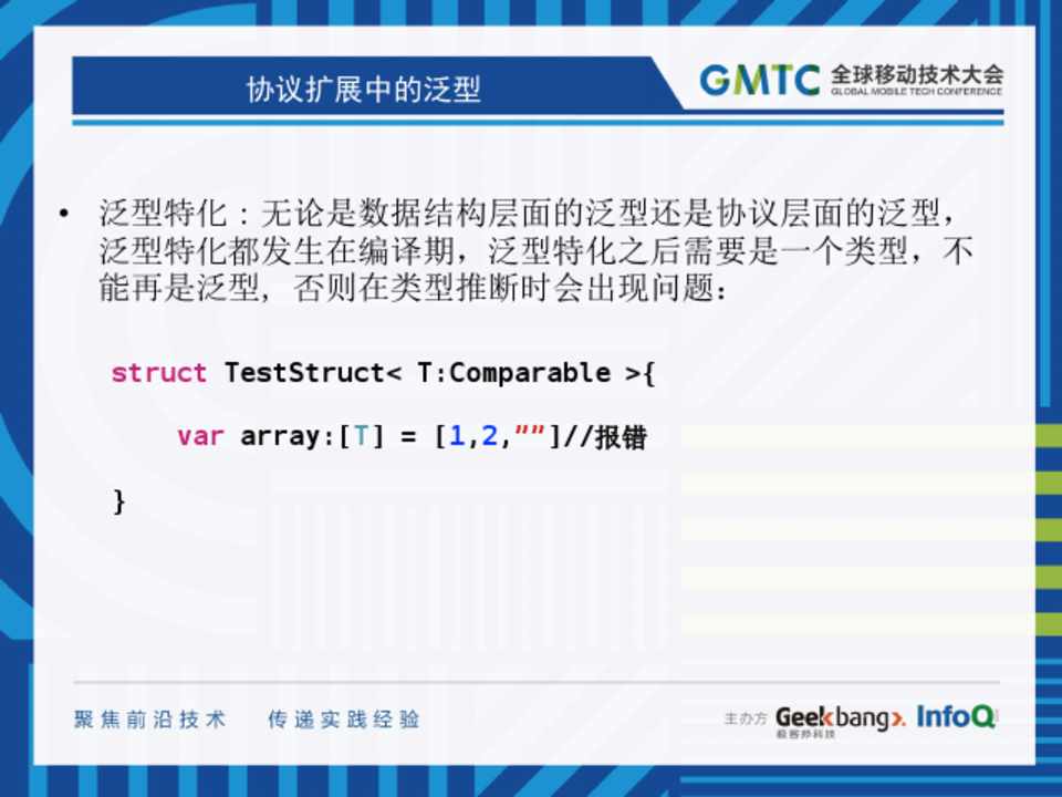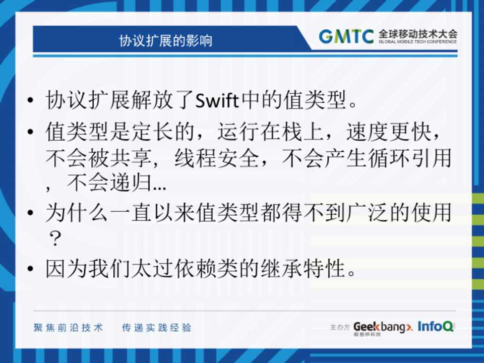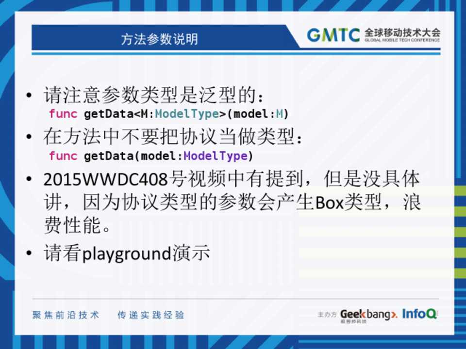 • 2015WWDC408号视频中有提到,但是没具体 讲,因为协议类型的参数会产生Box类型,浪 费性能。